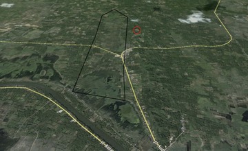 The Cina valley, looking south from above Sengkang. The early papace site is identified by the red circle.